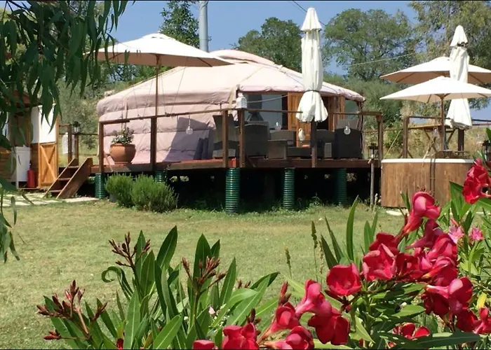 Offering guests to unwind in a Jacuzzi, Glamping Abruzzo - The Yurt Hotel is located around 15 minutes by car from castello De Sterlich-Aliprandi. Situated in olive groves, the 1-bedroom luxury tent boasts a free private car park as well as Wi-Fi.